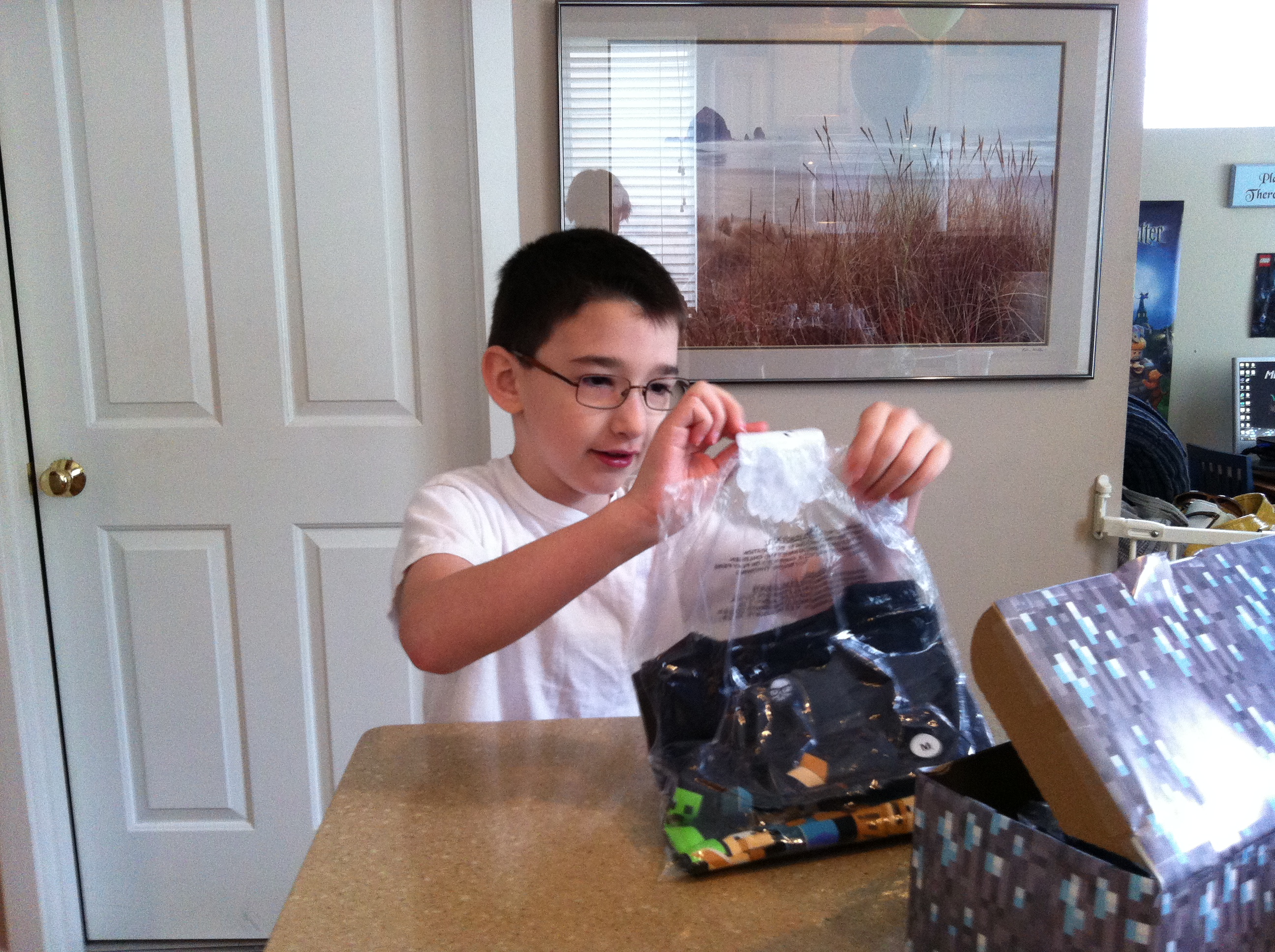 Opening Mine Craft shirt for 7th Birthday