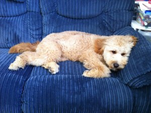 Puppy resting after play with The Boy