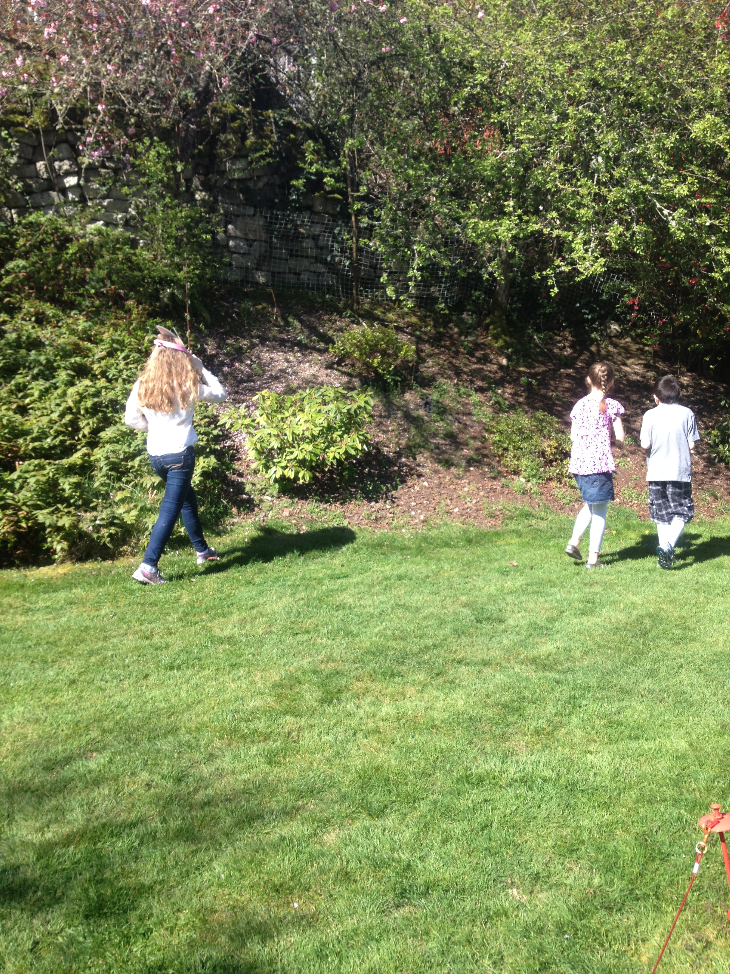 Usually it rains on Easter and so an inside hunt is a given, but when we have a sunny Easter Sunday…it screams for an outside egg hunt!  As I stood and watched my son with his cousins, the memories of previous egg hunts flooded my mind.  I remember when it was first only the girls and they always looked so cute in their Easter dresses.  Then came my son, initially dressed up with a miniature tie and suit and now in constantly growing rabbit size shoes!  Every year, there is one egg that requires the whole family’s attention to hunt down because someone forgot its secret location 🙂